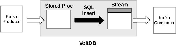 Topics use the Apache Kafka protocols when interpreting input from Kafka producers and when generating output for Kafka consumers. The configuration declares the topic and specifies the stored procedure that receives the inbound data. You can use a database table or stream — or even a stream view — as the source for topic output. The CREATE... EXPORT TO TOPIC statement identifies the stream or table that is used to queue outbound data to the specified topic. VoltDB topics operate just like Kafka topics, with the database nodes acting as Kafka brokers. However, unlike Kafka, VoltDB topics also have the ability to analyze, act on, or even modify the data as it passes through.